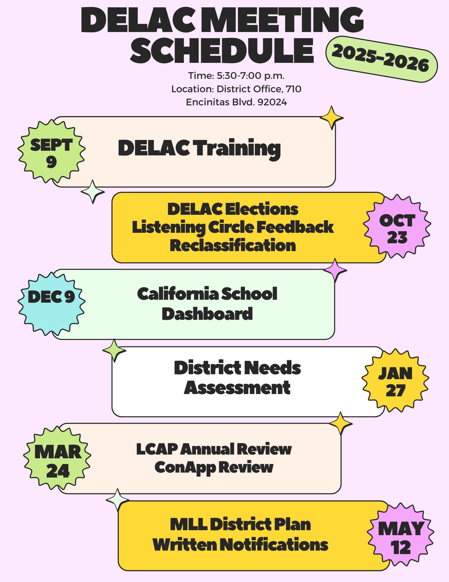 Each California public school district with 51 or more English learners must form a District English Learner Advisory Committee (DELAC) unless the district designates for this purpose a subcommittee of an existing districtwide advisory committee.
