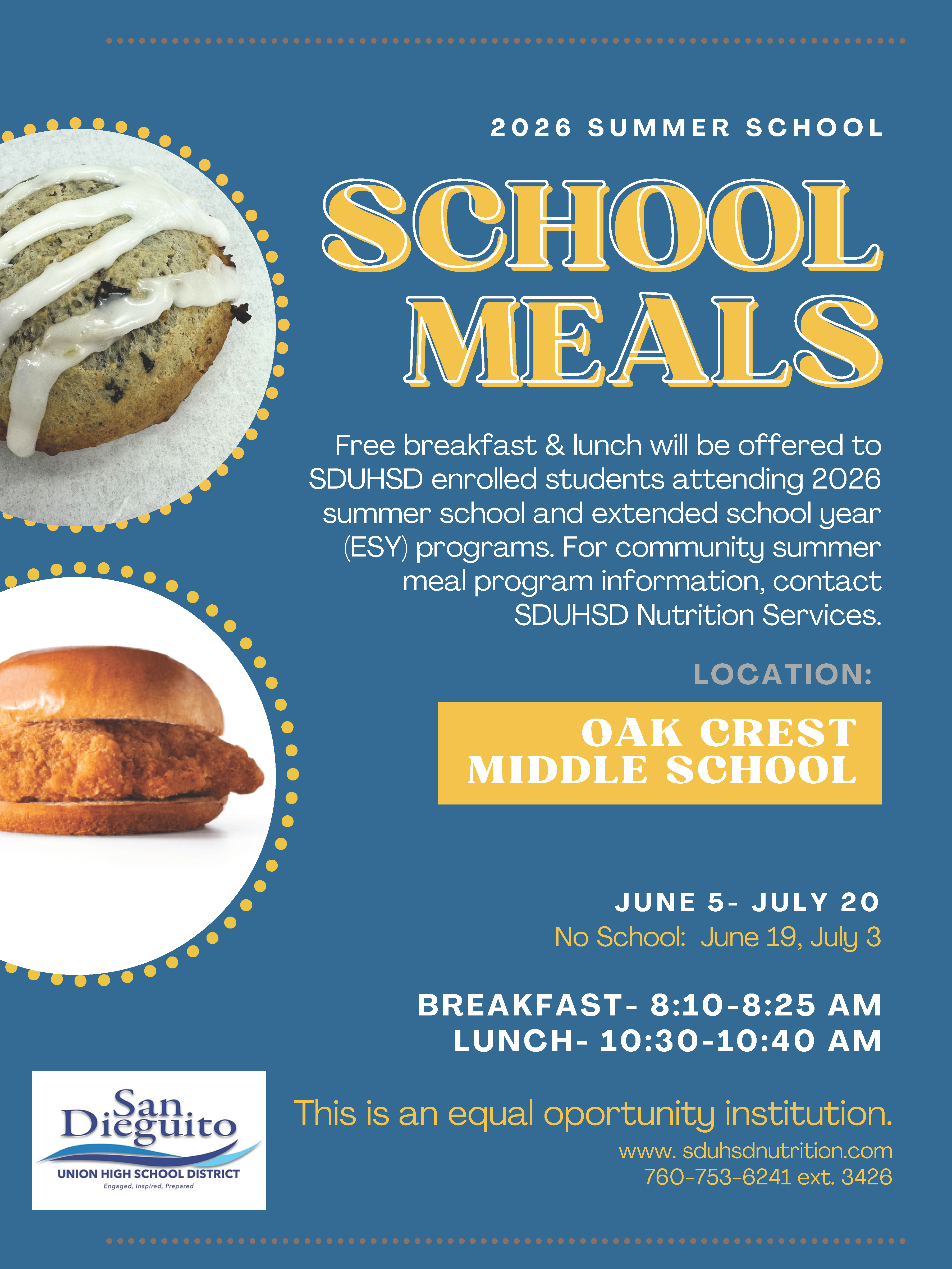 - Middle School (Current Grade 7 & 8) ESY - Location: Oak Crest Middle School, 675 Balour Drive, Encinitas, CA 92024